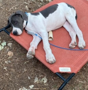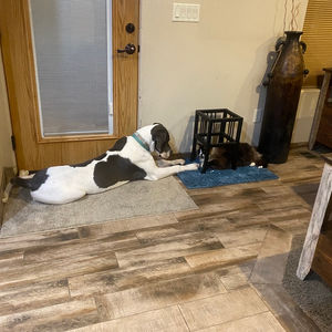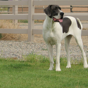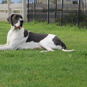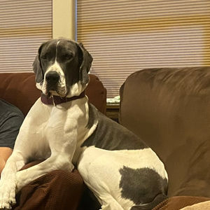 Martini is 75% European Dane. She has a sweet temperament and is another one of our gentle giants. She loves to run and play with her sisters. She is very independent, and would rather be outside running around or sunning herself. She's very loving and wants to be near you for cuddles. She instigates most of the shenanigans. Her favorite thing to do is trip you from behind when you are walking.